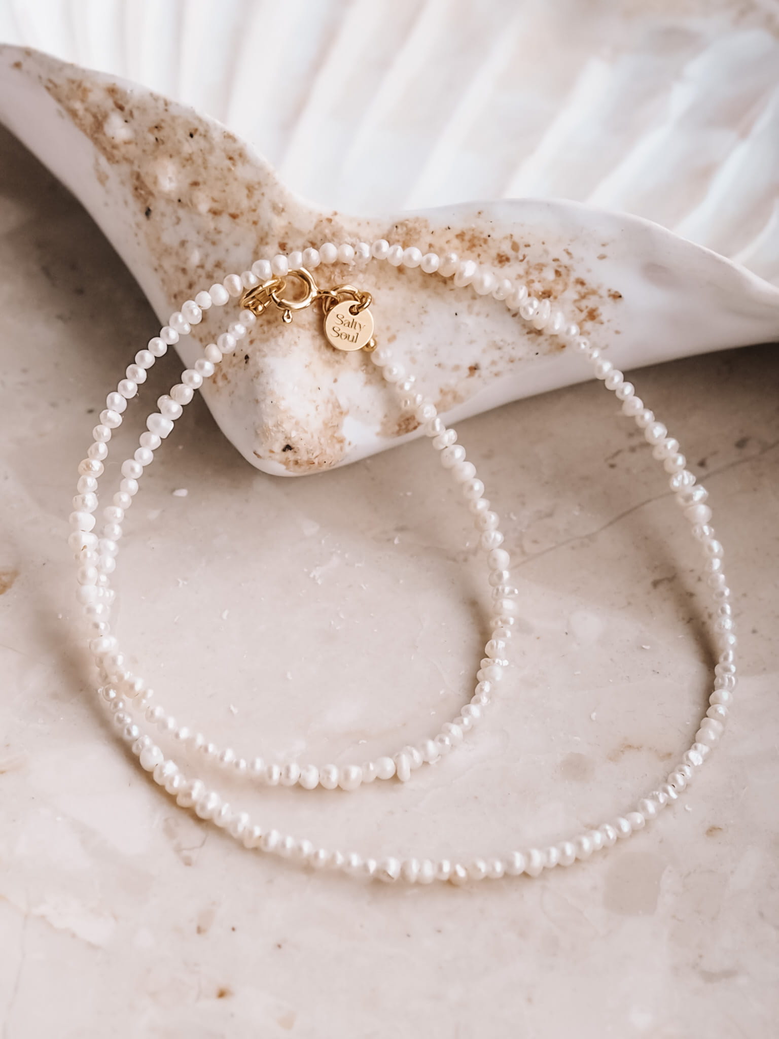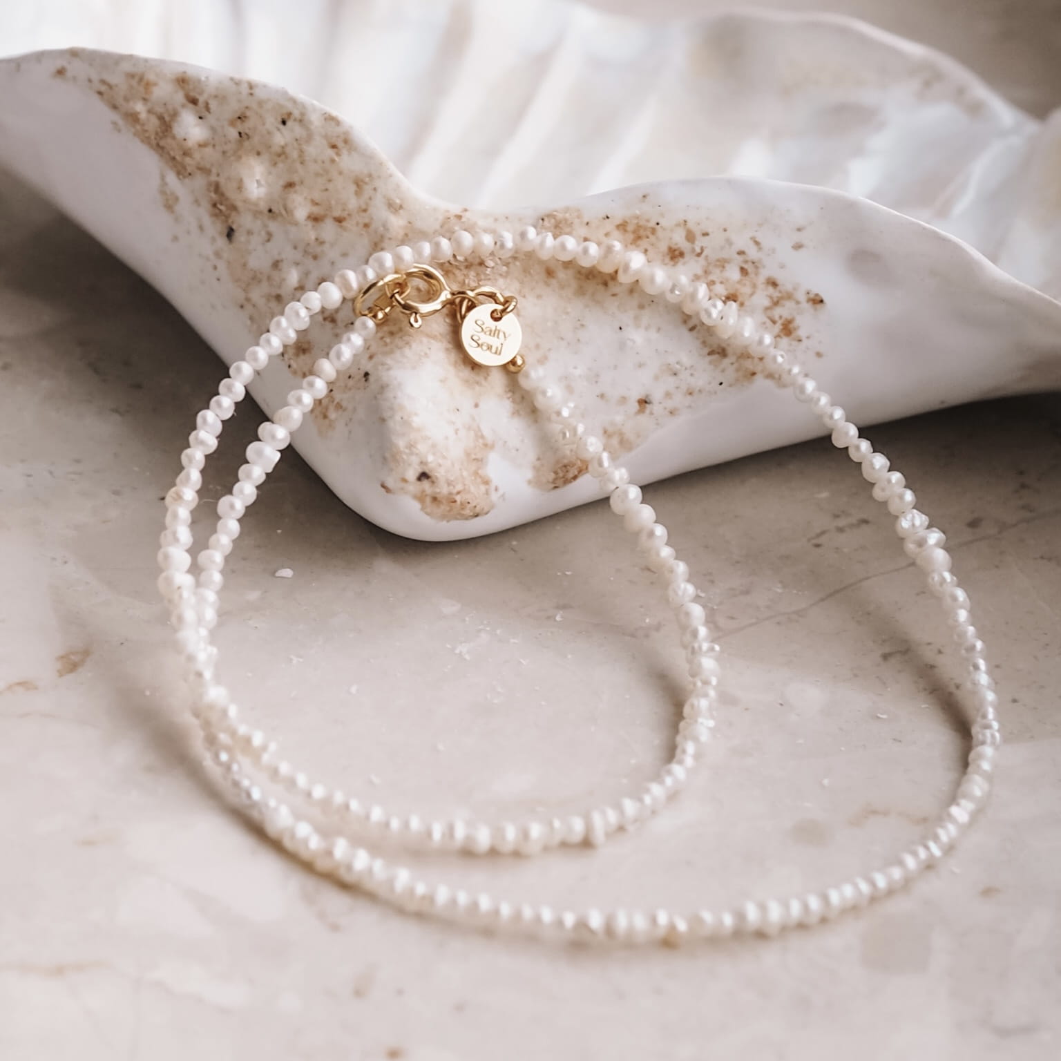W całości ręczne wykonanie, z klasycznym zapięciem jubilerskim z blaszką z wytłoczonym logo Salty Soul.