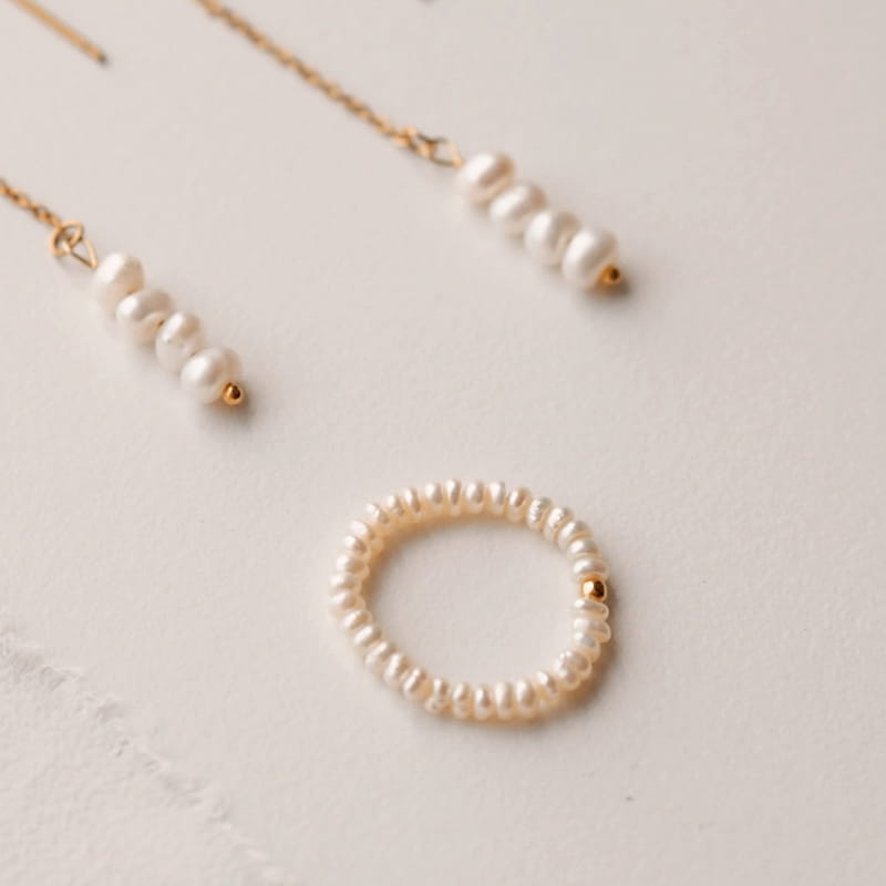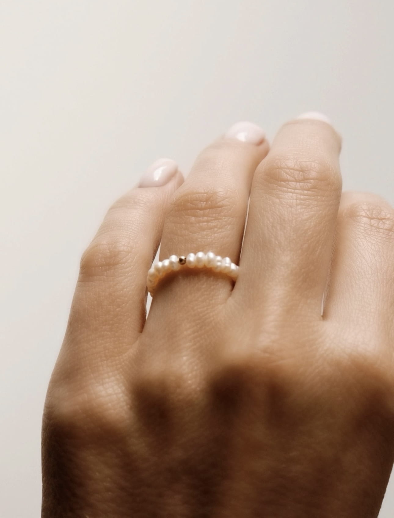 Pierścionek wykonany na elastycznej gumce jubilerskiej, z malutkich pereł naturalnych o idealnym śmietankowym odcieniu oraz kuleczki ze srebra pozłacanego 24k złotem. Perły to połączenie piękna, naturalności i prostoty. Ich symbolika oznacza błogie bezpieczeństwo, spokój i miłość. Pierścionek jest niezwykle minimalistycznym i subtelnym dodatkiem. Opakowany w eleganckie i ekologiczne czarne pudełko ze złotym logo (certyfikat FSC), z dołączoną kartą z opisem symboliki pereł oraz pocztówką, którą możesz wypisać życzeniami, stanowi doskonały pomysł na prezent.